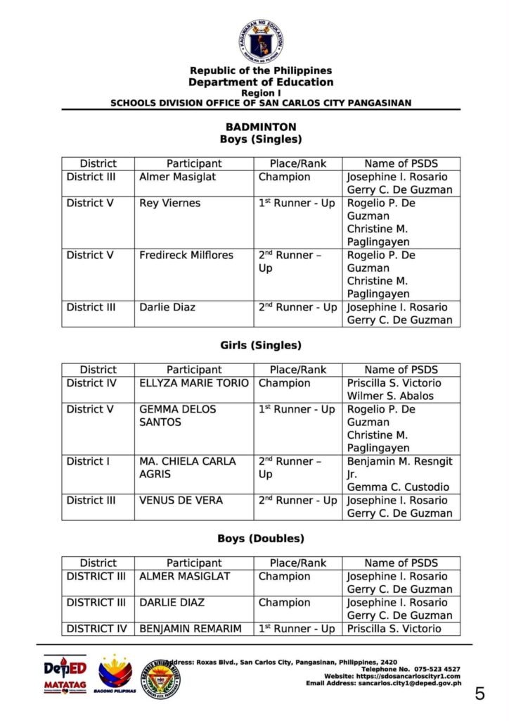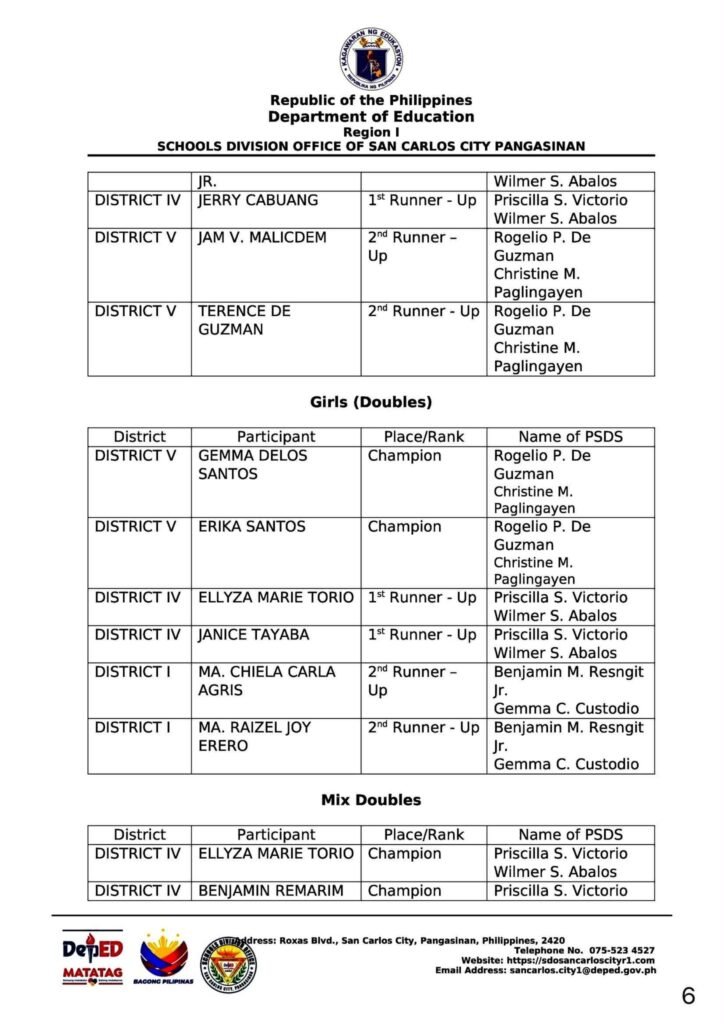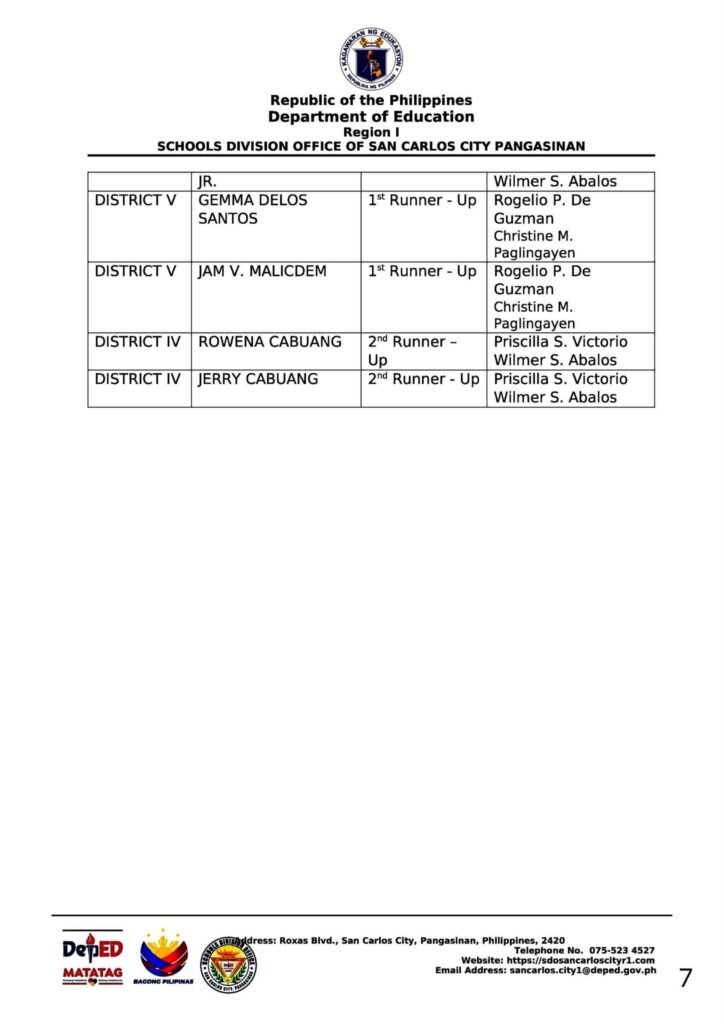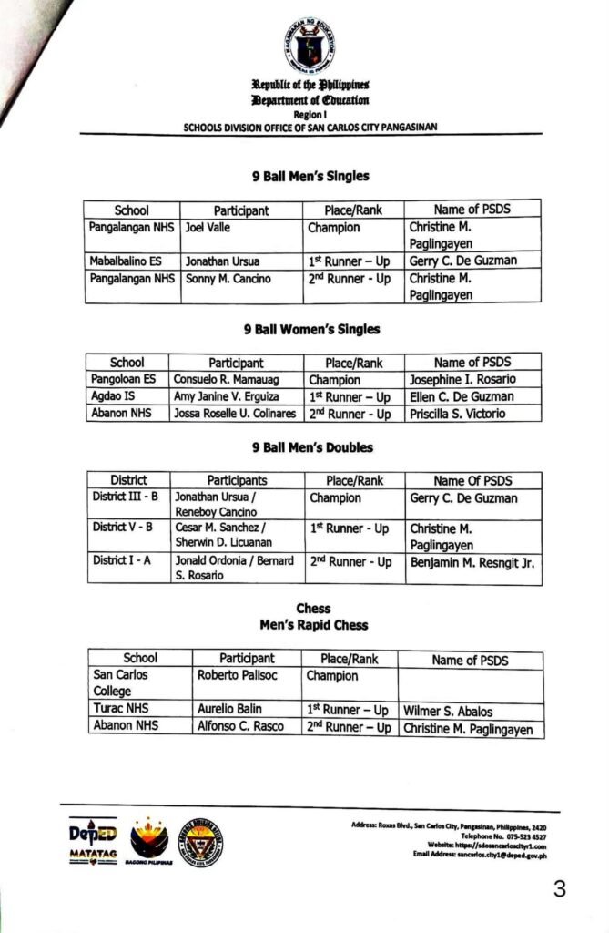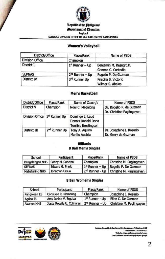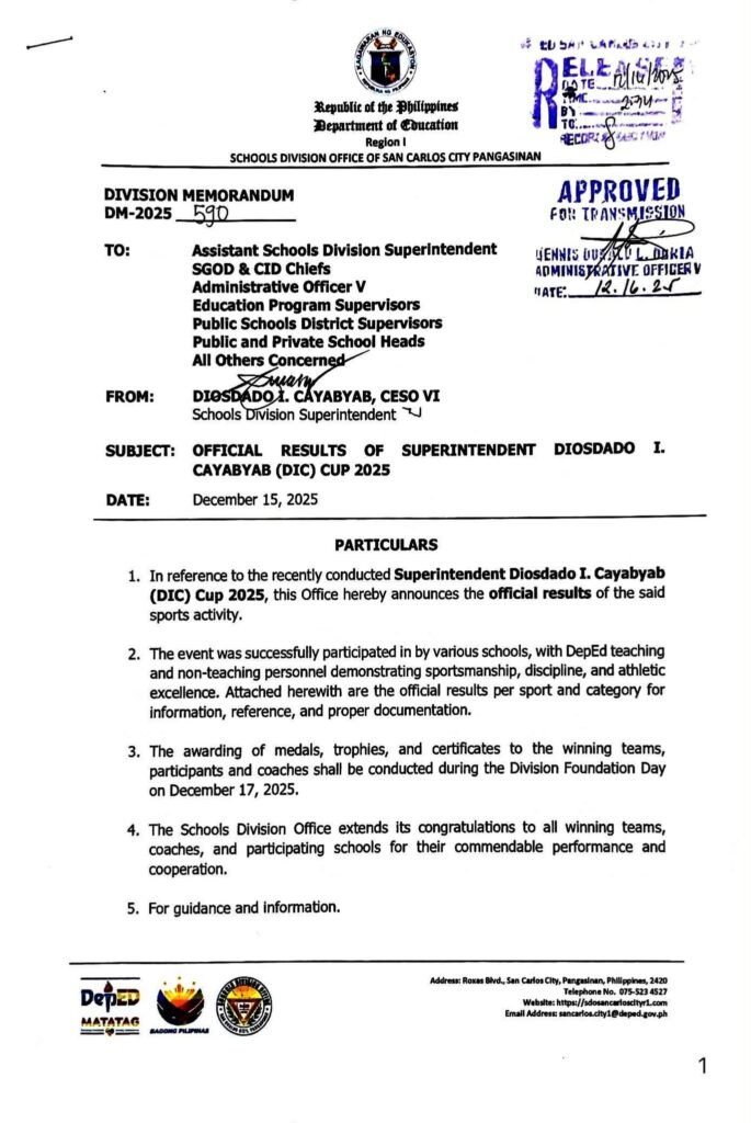 Division Memorandum No. 590 s, 2025 – OFFICIAL RESULTS OF SUPERINTENDENT DIOSDADO I. CAYABYAB (DIC) CUP 2025