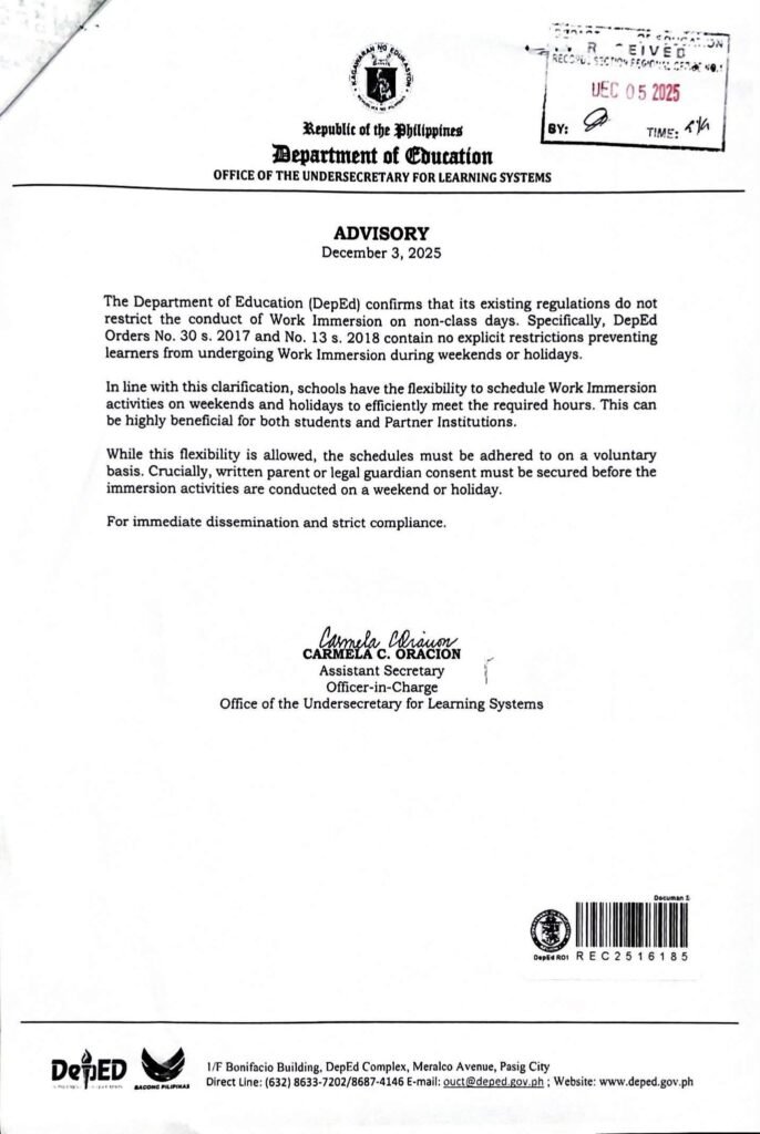 Division Memorandum No. 592 s, 2025 – CONDUCT OF WORK IMMERSION